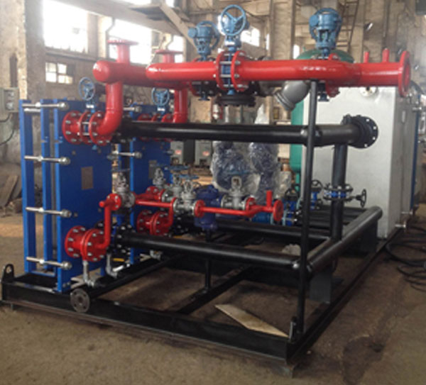 板式换热机组是一套经过有机组合的完整的换热设备,它可以进行汽—水、水—水的热交换,用户只需接上管道及电源即可使用。本系列机组广泛用于住宅、机关、学校、厂矿、医院、宾馆等场合的采暖、洗澡和空调系统。